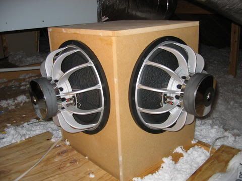 Ideally the subwoofers are situated between the listening room and an attic basement or garage using the floor ceiling or walls to separate the front and rear sound waves.