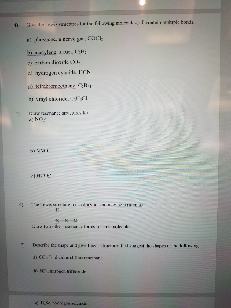 Write a lewis structure for each of the following organic molecules.